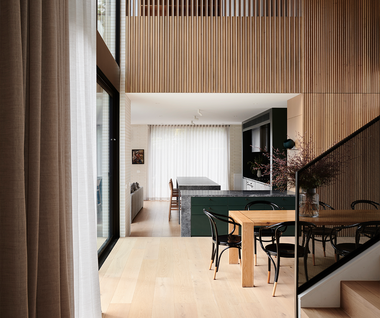 The deliberate direction to unite enduring materials with purposeful, yet unexpected details has fostered the home’s unique character, while enriching the family’s lifestyle and daily rituals. The practicalities of a family home are embraced, as a key driver of the design, ensuring each space flows and functions to promote a lifestyle of ease and efficiency. The U-shaped layout encompasses the central courtyard, defining spaces to cook, play, focus and retreat.
